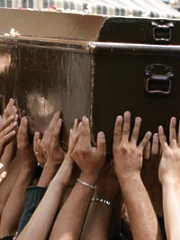 Wat gaat er gebeuren met Michael Jackson? Wordt hij begraven, gecremeerd of geplastineerd? Niemand die het nog (precies) weet. Mocht het een publieke plechtigheid zijn dan kan het wel eens de grootste begrafenis ooit worden in de geschiedenis van de Amerikaanse showbizz, aldus de USA Today.